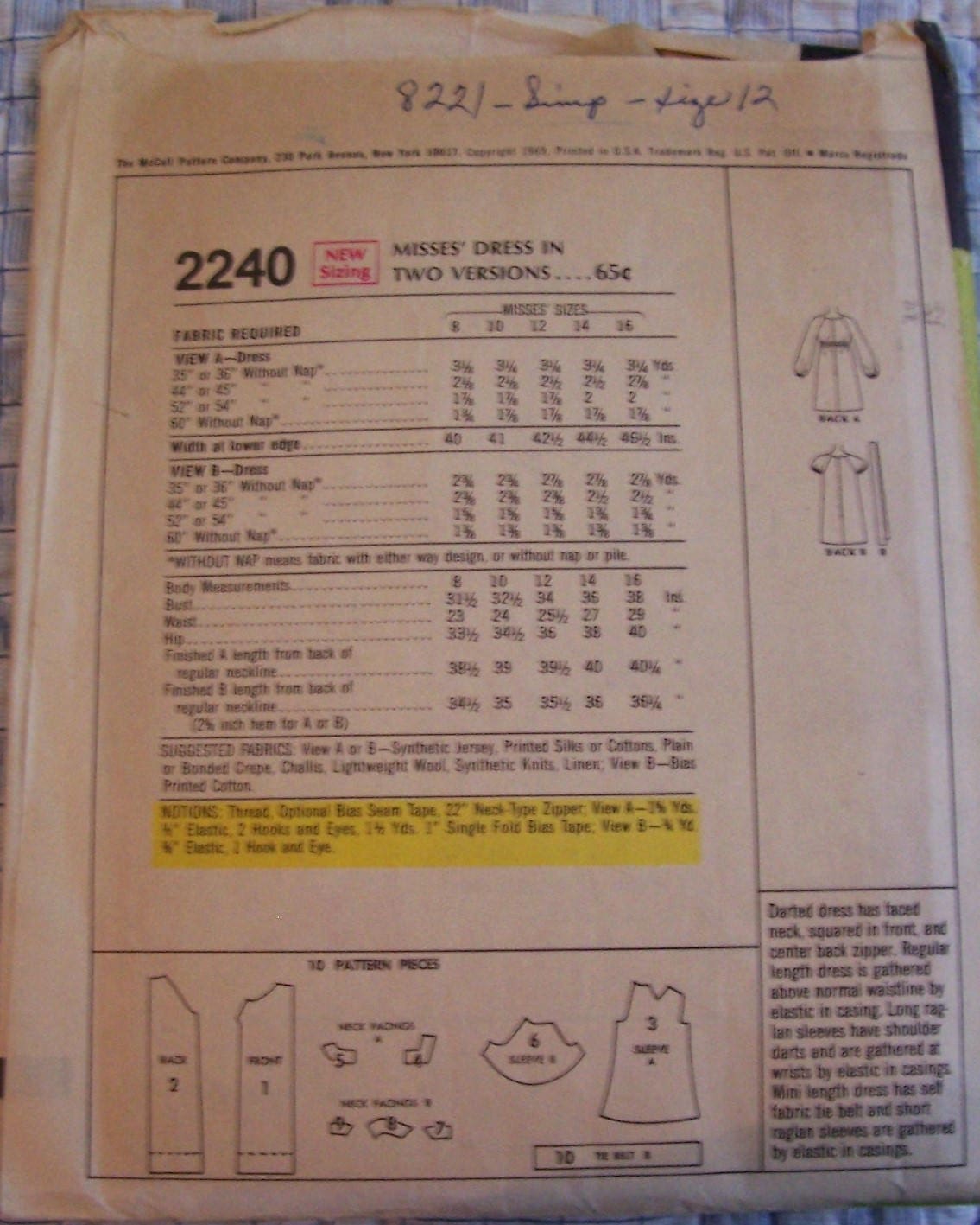 Mccall S 2240 Misses Mini Dress Step By Step Pattern Etsy